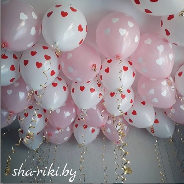 Латексный шар 12" с рисунком в виде сердечек. Стоимость указана с учетом обработки для полета от 2-3 дней и более