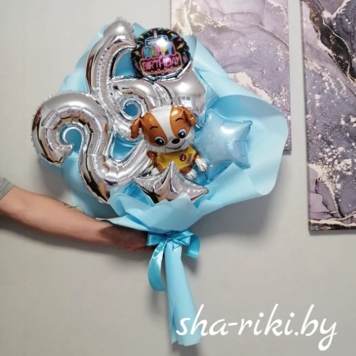 Букет из 7 фольгированных мини-шаров, среди которых 2 мини-цифры и фольгированная фигура на Ваш выбор