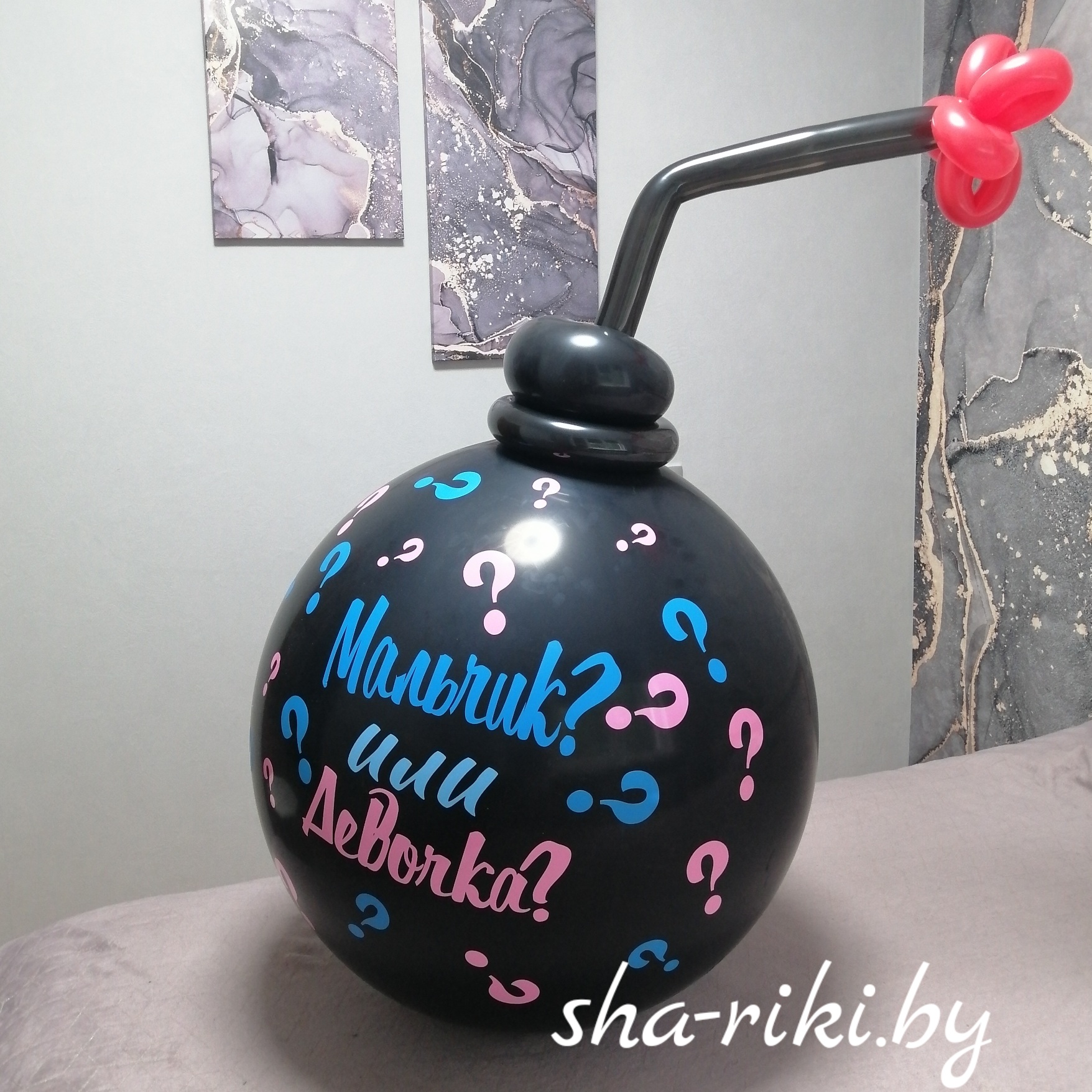 Большой шар-сюрприз (с воздухом) для определения пола будущего ребенка, внутри которого мини-шарики и конфетти розового или голубого цвета