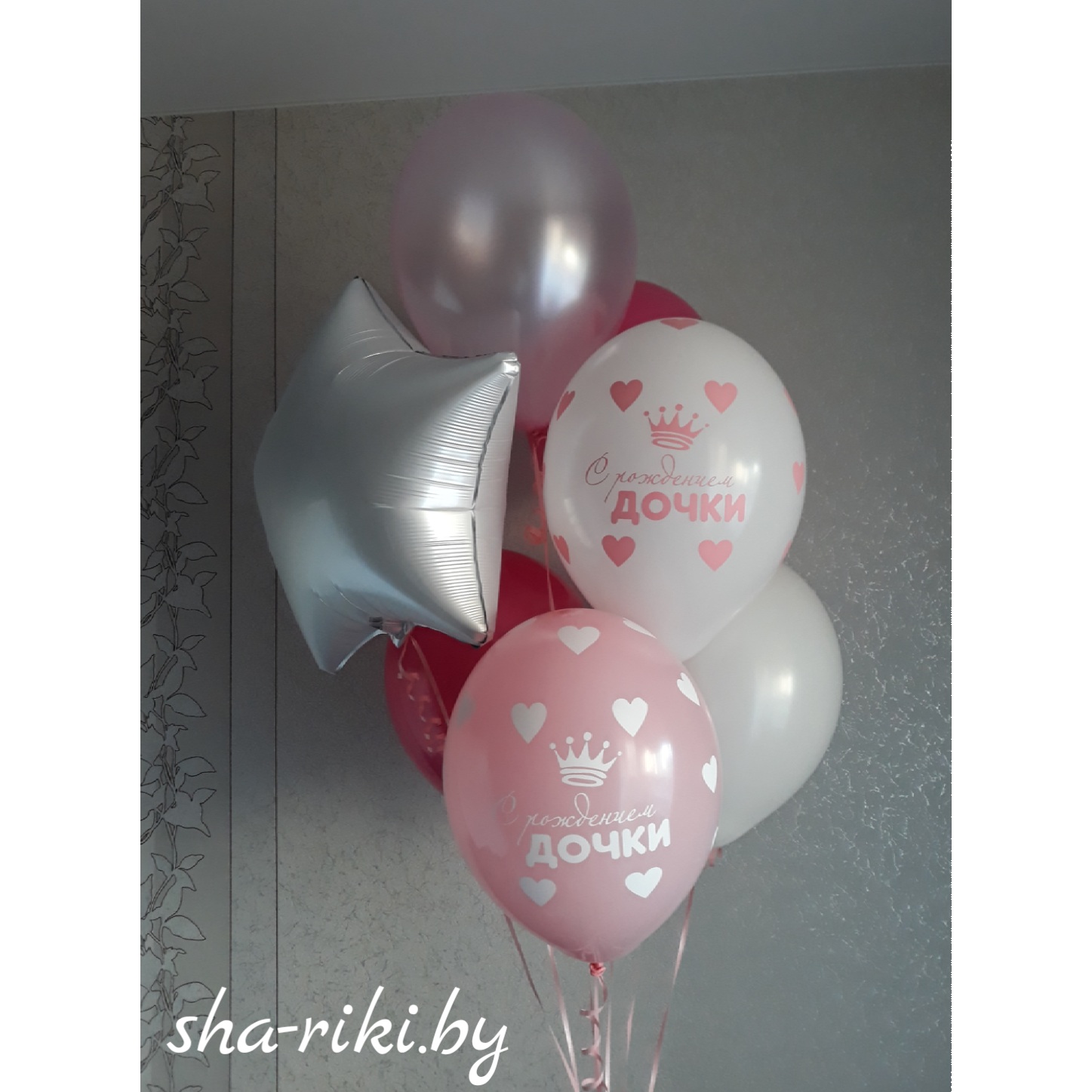 Состав: фольгированная звезда, 2 шара с рисунком и 4 однотонных латексных шара