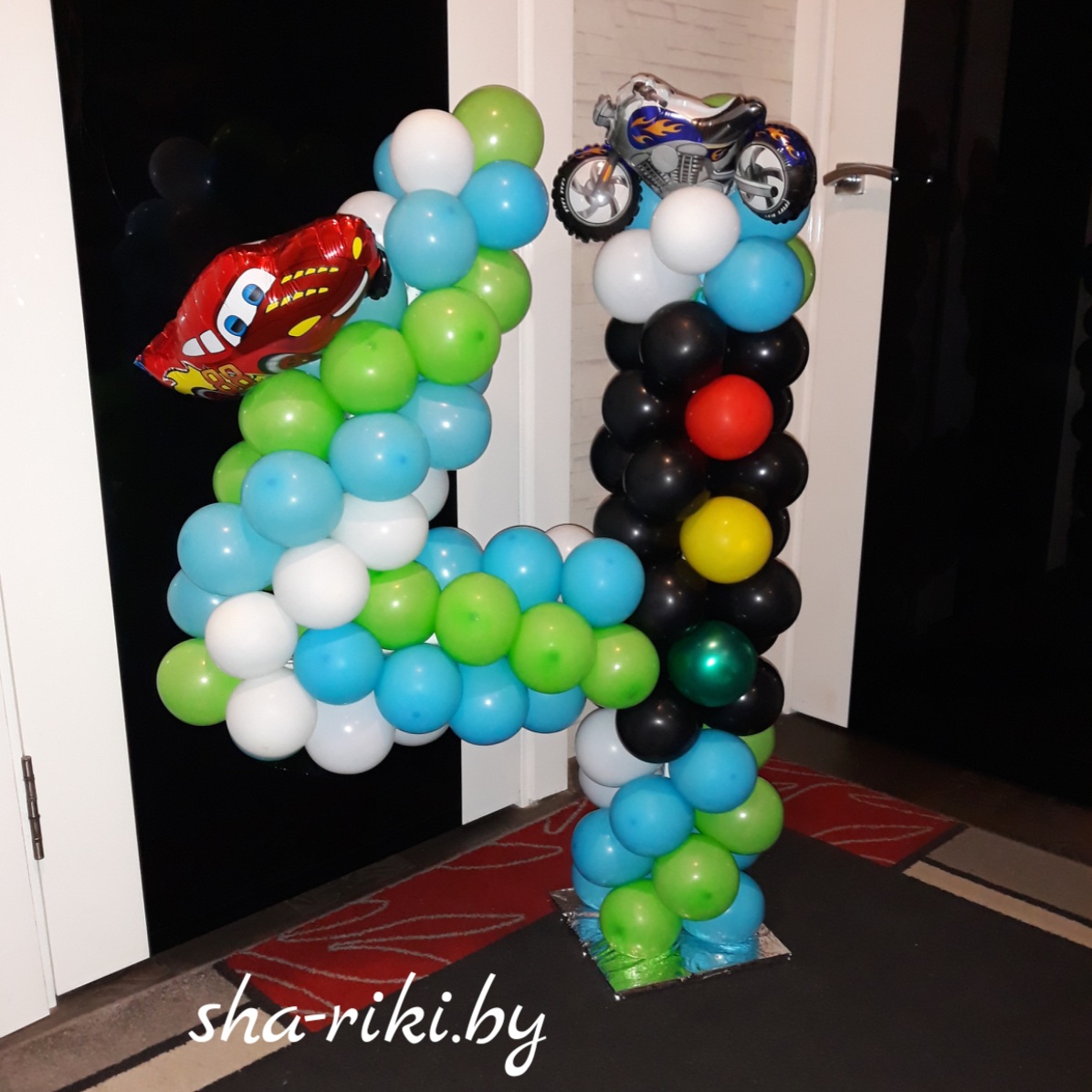 Цифра из воздушных шаров на каркасе, стоит самостоятельно