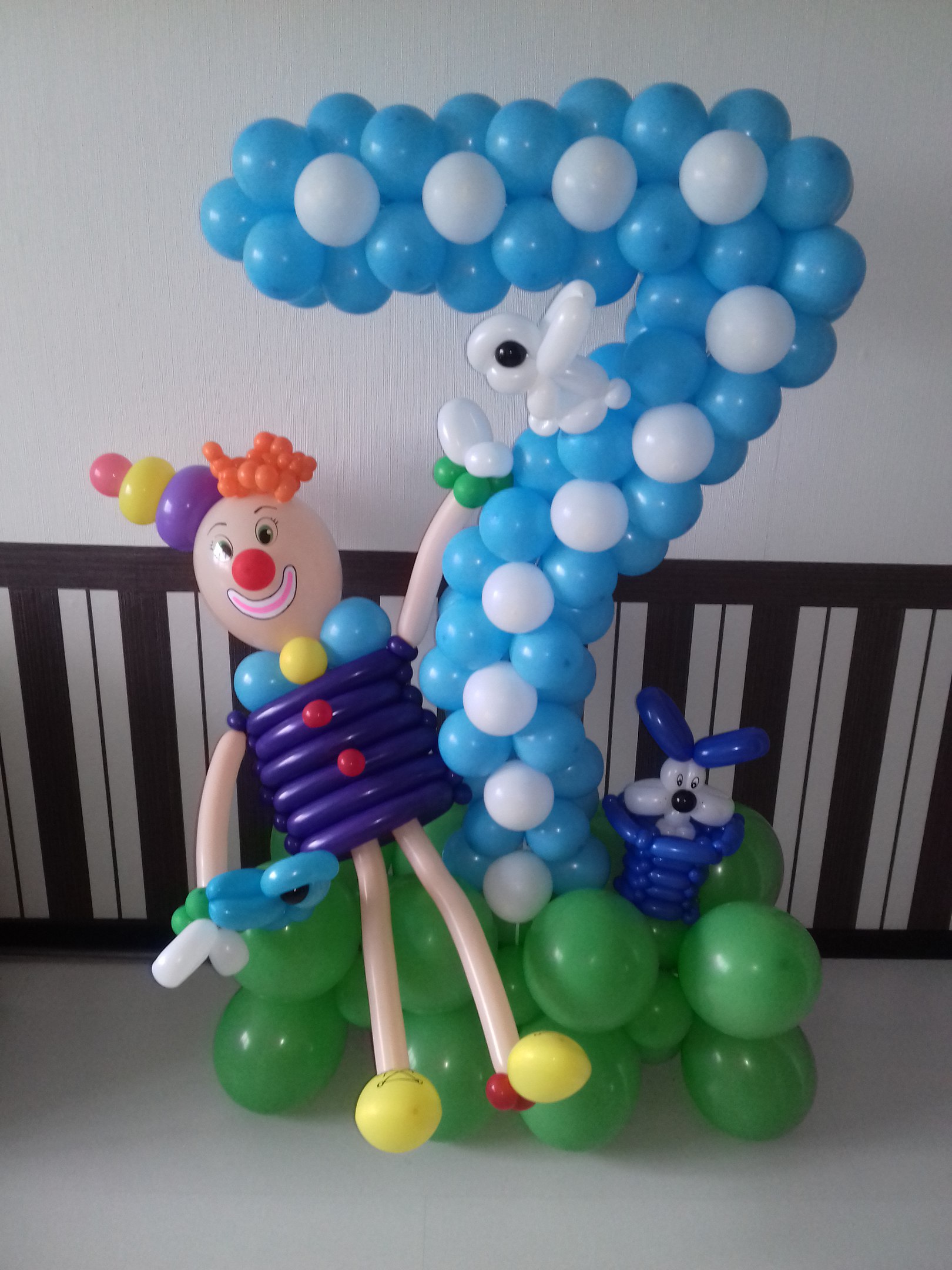 Цифра из воздушных шаров с клоуном. Цвет можно изменить по Вашему желанию