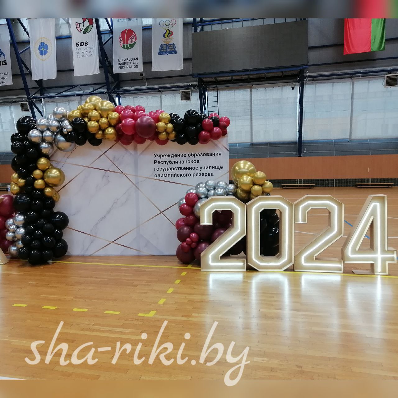 Фотозона с баннером (2*3 м), разнокалиберной гирляндой и светящимися цифрами